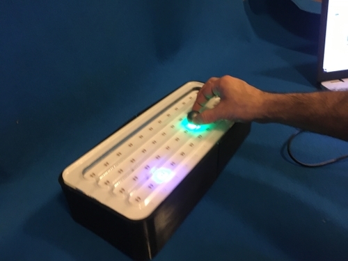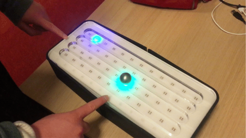 The plate where the user places the ball to set the alarm is divided into four rows in parallel. Along the bottom line, there are numbers from 0 to 12 to show the hours.